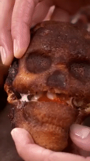 Du kan til og med legge til ekstra fylte ingredienser som fruktsyltetøy, sjokolade, egg, kremer osv. Overrask vennene dine ved å åpne hodeskallens munn og "spy ut" lavalignende syltetøy!