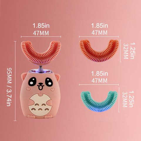 🦷 Skånsom pleie med U-formet design: Denne U-formede tannbørsten for barn har et mykt silikonbørstehode, spesielt utviklet for ømme og følsomme tenner. Den unike U-formede designen sikrer en 360 ° rengjøringsopplevelse fra alle vinkler, noe som fremmer et sunnere munnhule.
