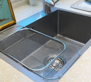 【Spar plass】 Når det ikke er i bruk, vil dette kjøkkenvaskfilteret i rustfritt stål stables og er enkelt å oppbevare, noe som vil spare plass. måle vasken din riktig for å sikre at avløpsbrettet passer til vasken din.