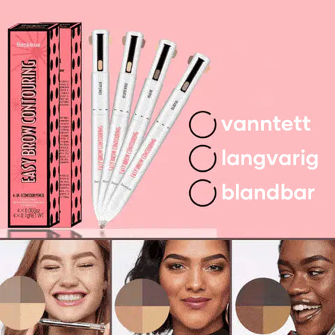 Gjør brynene dine som en proff! 4-i-1 Clicky Pen: lysere brynskygge, dypere brynskygge, kantdefinerer og highlighter.