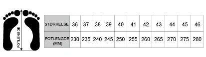 Se størrelsestabellen for å unngå unødvendige problemer.